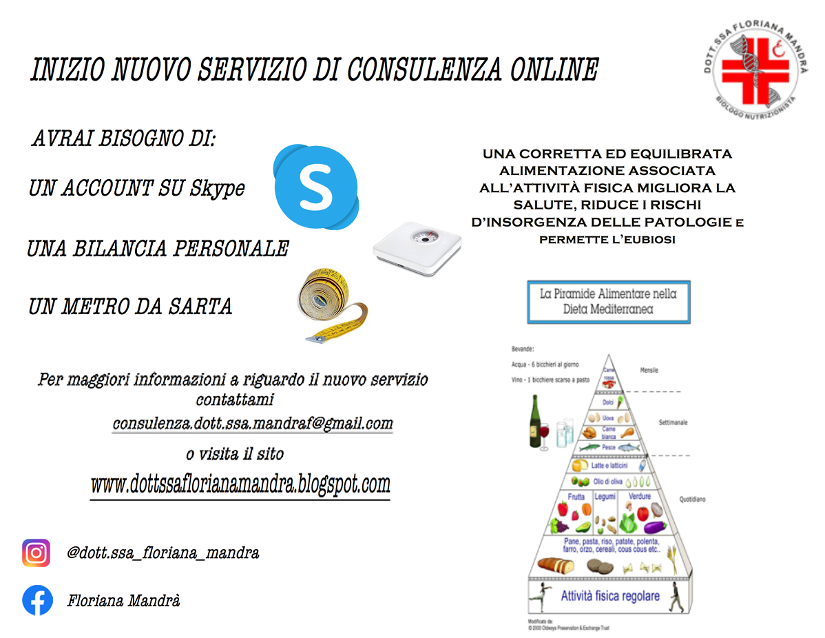 Dott.ssa Floriana Mandra Studio di Nutrizione Umana: Lancio di un nuovo servizio di consulenza online